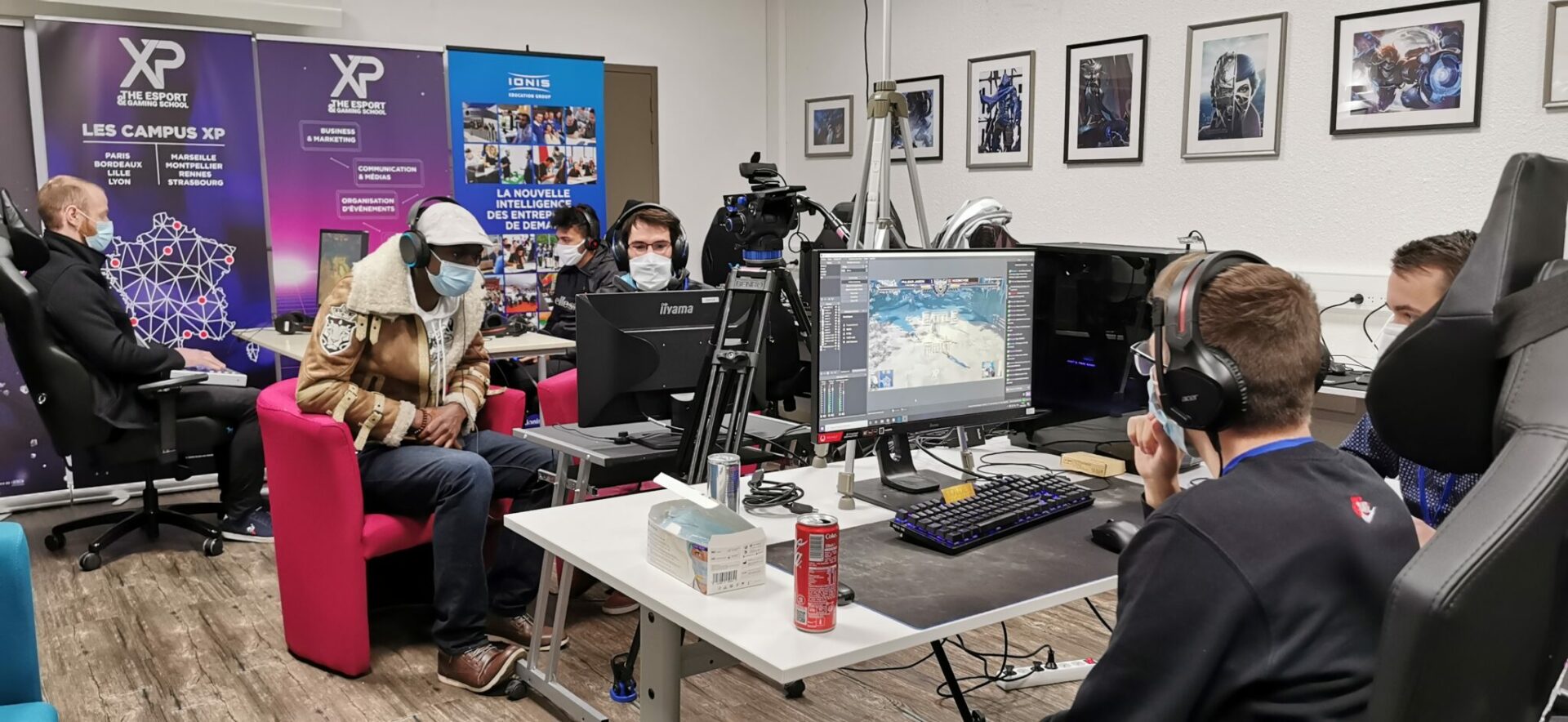 4 salles étaient mises à disposition pour différentes activités : des matchs en ligne, une retransmission en direct, une salle d’entraînement et un plateau de diffusion sur Twitch avec la présence de commentateurs.